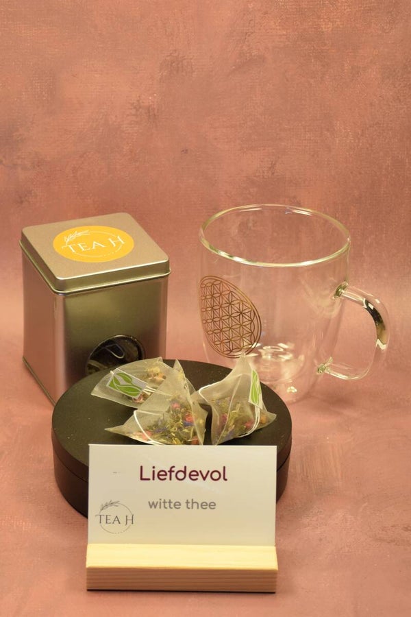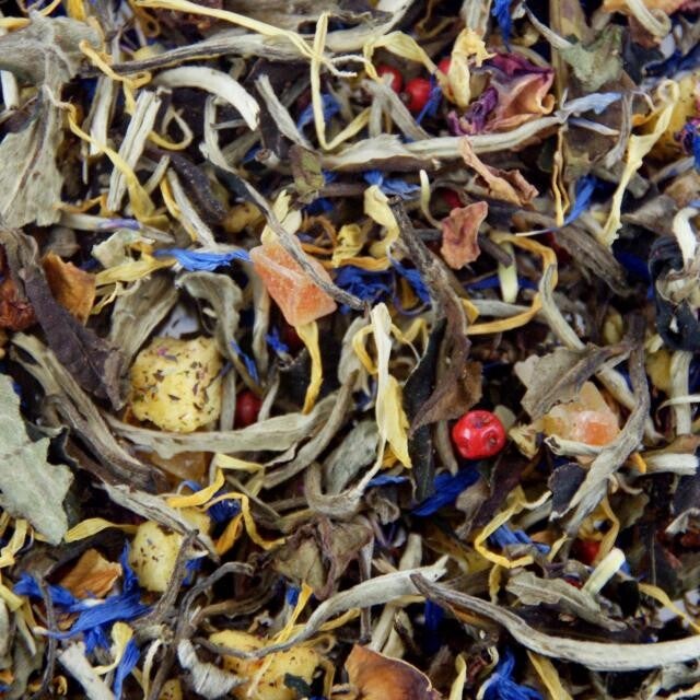 Witte thee. Prachtige, zacht zoete thee op basis van witte thee Pai mu tan. Boordevol bloemen en exotisch fruit. Een thee vol liefde.